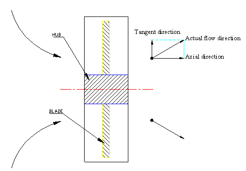圖1、風(fēng)扇出口處流體的實(shí)際流動方向