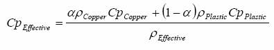 如圖3a,在導線架模型兩端有兩個導熱性很強的立方體,我們在一端施加熱源,在另一端施以固定的熱傳導系數。除去這些,模型總長10mm。模型寬高分別為0.2mm和1mm。引線架覆蓋系數,α,為0.5。材料性能計算公式如下: