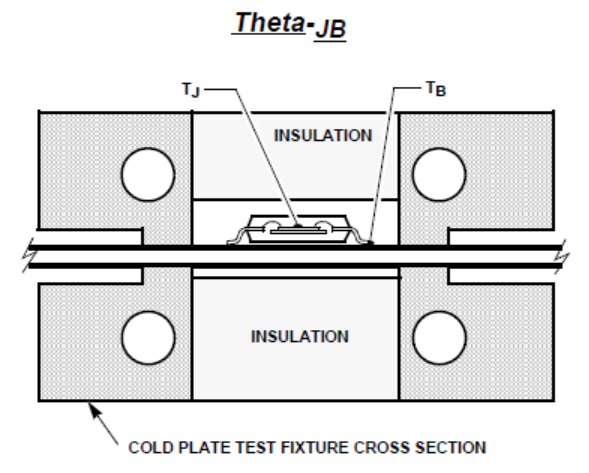 希臘字母“psi”用于區(qū)分ΨJB和θJB,因?yàn)椴⒉皇撬械臒崃繉?shí)際上在溫度測(cè)量點(diǎn)(即結(jié)點(diǎn)和板)之間流動(dòng),類似于θJB。這是因?yàn)?Psi;JB測(cè)試的設(shè)置不會(huì)像θJB那樣強(qiáng)制所有熱流從板子流過。因此,ΨJB不是“真正的”熱阻。