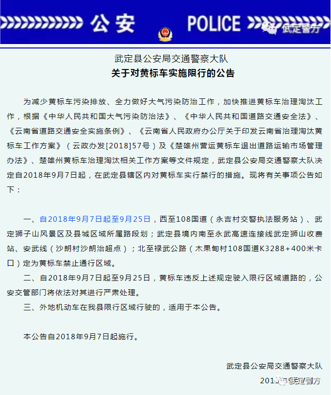 二、加強登記管理。由交警大隊負責,加強黃標車登記管理,限制黃標車辦理轉出、轉入、轉移登記,采取互聯網及媒體公示、短信提醒、電話告知等方式,督促黃標車所有人辦理報廢注銷登記手續。