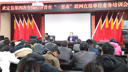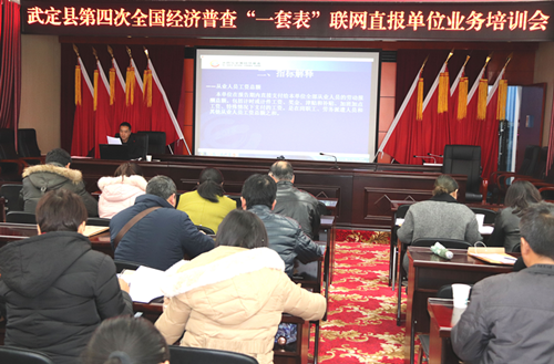 2019年1月10日,在“四上企業”經濟普查聯網直報平臺即將開網之際,武定縣舉辦第四次全國經濟普查“一套表”聯網直報單位業務培訓會。會上,縣第四次全國經濟普查領導小組辦公室主任、縣統計局局長李春云就做好“四上企業”經濟普查聯網直報工作提出具體要求。