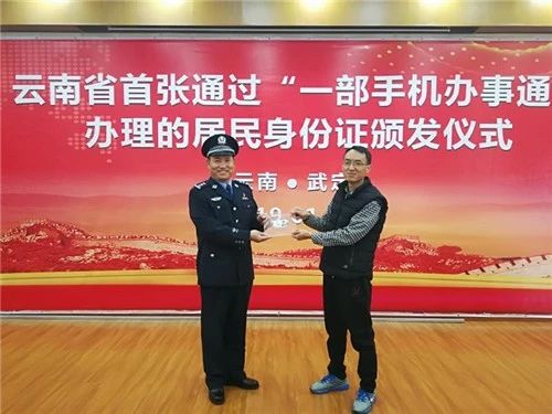 1月22日,云南省首張通過“一部手機辦事通”補辦的居民身份證在楚雄州武定縣公安局獅山派出所成功申領。標志著云南公安機關創新便民惠民新舉措再添便捷途徑。