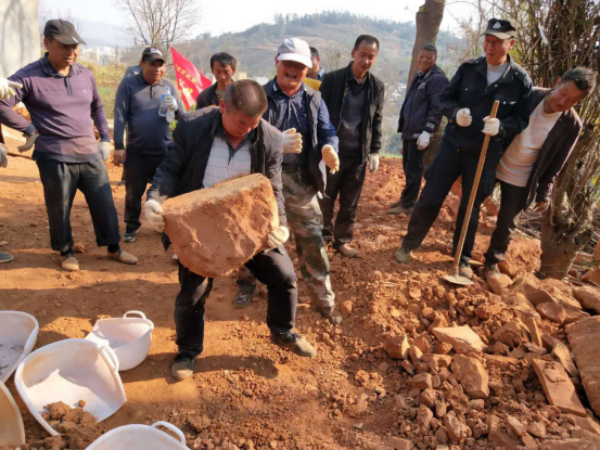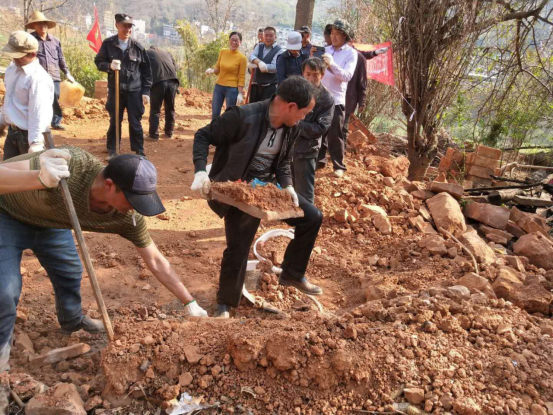“感謝黨委政府!有了你們的幫忙,我就能住上新房子了。”獅山鎮西和村委會吉家村貧困戶廖桂軍向前來幫助的掛包幫單位武定縣殘聯,獅山鎮黨委政府,西和村委會黨員干部和村民小組長等32人連聲道謝!為了加快CD級危房改造推進工作,今天,頭頂著炎熱的太陽,32人拿著鐵鎬,鋤頭和鐵鏟等勞動工具來到廖桂軍家,為他的CD級危房拆除重建工程,做好前期的平整土地準備工作,讓廖桂軍一家能盡快住上新房,掛包幫單位、責任區領導和村委會黨總支出主意,想辦法,施工方人手不夠,村黨總支負責找人,沒有資金墊付材料費,聶副鎮長想辦法借,為了加快建房進度,最大限度節約資金,今天來平整土地后,明天施工方就動工建房。