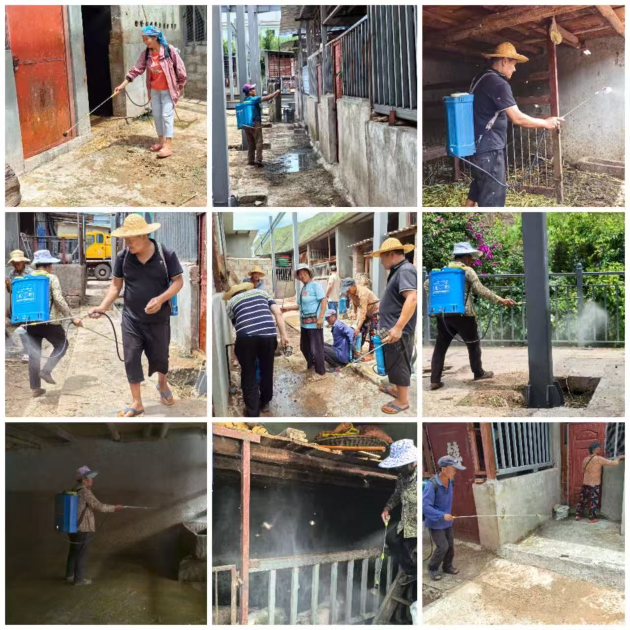 集中消毒,潔凈“家園”。針對養殖密集、風險較高的白馬口、法古養殖小區和水口村等地,鄉農業農村發展服務中心統一調配高效低毒的專業消毒劑,開展了“清潔家園”集中消毒行動。技術人員現場指導并組織村民對公共通道、糞污堆放點、無害化處理點周邊進行大面積噴灑,不留死角,協助重點散戶對自家圈舍、進出通道等關鍵部位進行規范消殺,詳細講解消毒頻次、濃度和作用時間等科學要點,確保消毒效果。