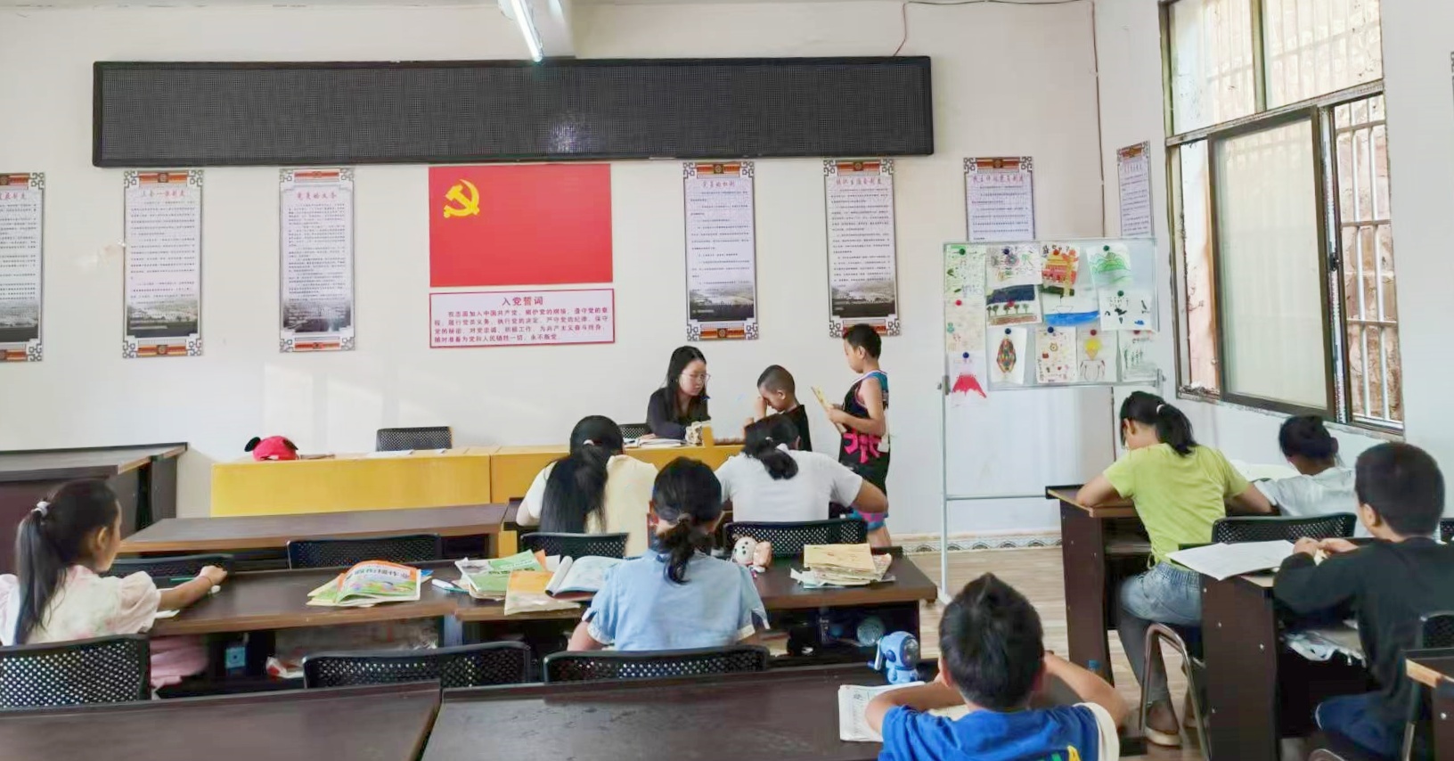 勐果村“青春相伴·‘益’起發光”公益小課堂由1名本村假期返鄉老師和3名大學生組成,從去年暑假開始到今年已成功開辦2期。主要圍繞學業輔導、興趣培養、安全教育三大核心主題有序開展。課堂上,孩子們有的坐在桌前寫假期作業,有的圍坐在一起翻看防溺水宣傳手冊,還有的跟著老師學疊千紙鶴,偶爾傳來幾句小聲討論,互動頻繁,歡聲笑語不斷,學習氛圍十分濃厚。
