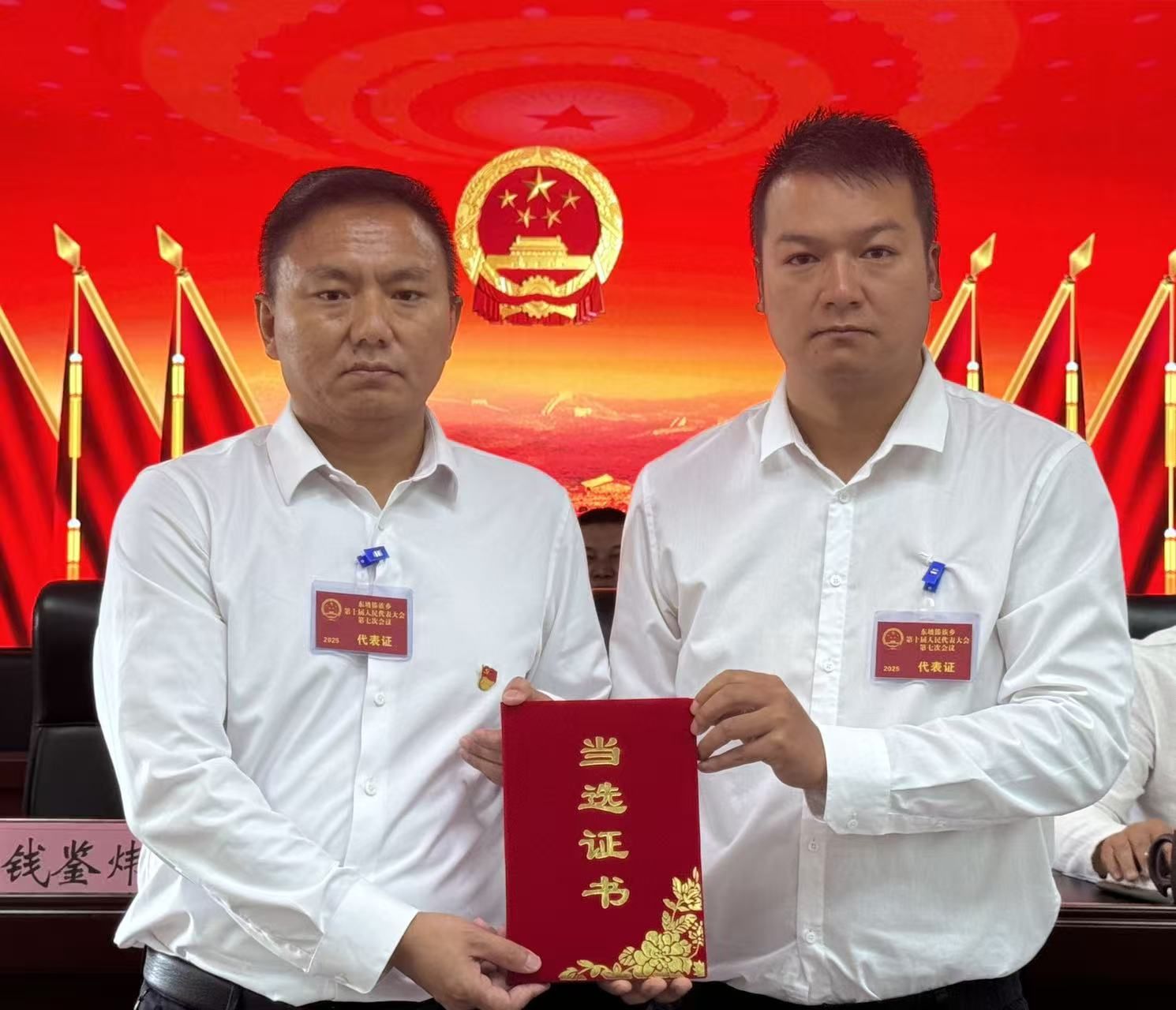 大會通過無記名投票方式,全票選舉錢鑒煒同志為東坡傣族鄉第十屆人大主席團主席,鄉黨委書記張躍進為新當選的鄉人大主席頒發當選證書。