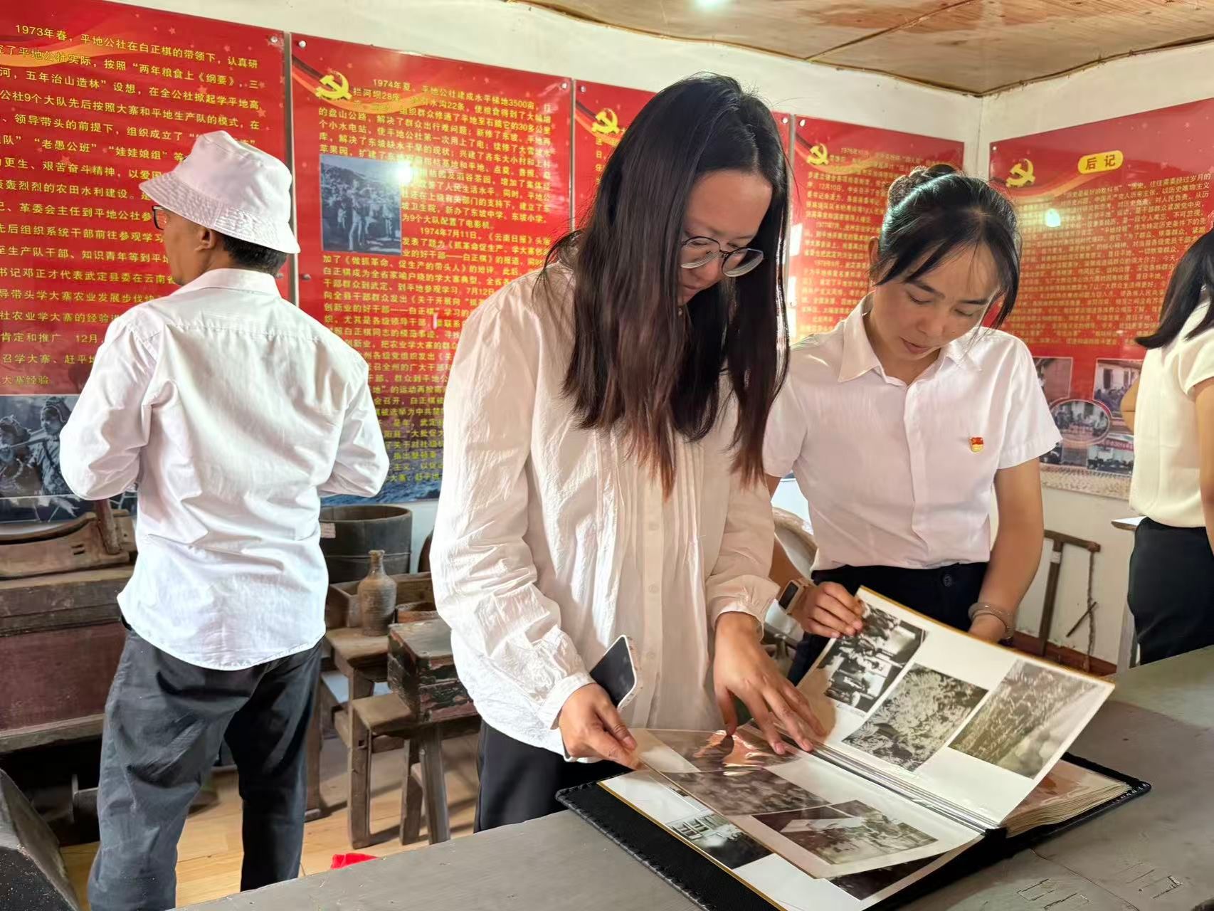 在回味平地展覽室,黨員們了解了平地公社成立的背景、公社開展治河、修路引水、科學(xué)種田、重教興文、建設(shè)新農(nóng)村等內(nèi)容。一幅幅泛黃的老照片,一件件動(dòng)人故事,重現(xiàn)了昔日平地干部與各族群眾團(tuán)結(jié)一心艱苦創(chuàng)業(yè)的場景,仿佛看到了昔日“糧食堆滿倉,牛羊遍山崗,果樹一行行,機(jī)器陣陣響”的繁華景象,讓全體人員真真切切地感受到了“平地精神”的偉力。參觀過程中,許多黨員都被革命先輩們的英勇事跡所感動(dòng),心靈受到了強(qiáng)烈的震撼和洗禮。