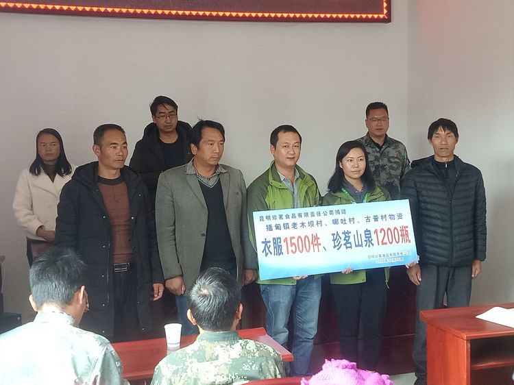 2018年12月18日,經(jīng)過省委組織部駐村扶貧工作隊(duì)的積極協(xié)調(diào)爭(zhēng)取,昆明珍茗食品有限責(zé)任公司開展“珍茗公益 第三季冬衣順手捐活動(dòng)”,到插甸鎮(zhèn)老木壩村、哪吐村、古普村向貧困群眾捐贈(zèng)1500件衣服和1200瓶珍茗山泉水。