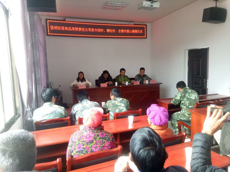 愛心捐贈(zèng)儀式在插甸鎮(zhèn)黨員群眾教育培訓(xùn)實(shí)踐基地舉行,昆明珍茗食品有限責(zé)任公司有關(guān)同志、插甸鎮(zhèn)黨委副書記和分管副鎮(zhèn)長(zhǎng)、省委組織部駐村扶貧工作隊(duì)員、老木壩村、哪吐村、古普村“三職”干部和貧困群眾代表參加了捐贈(zèng)儀式。