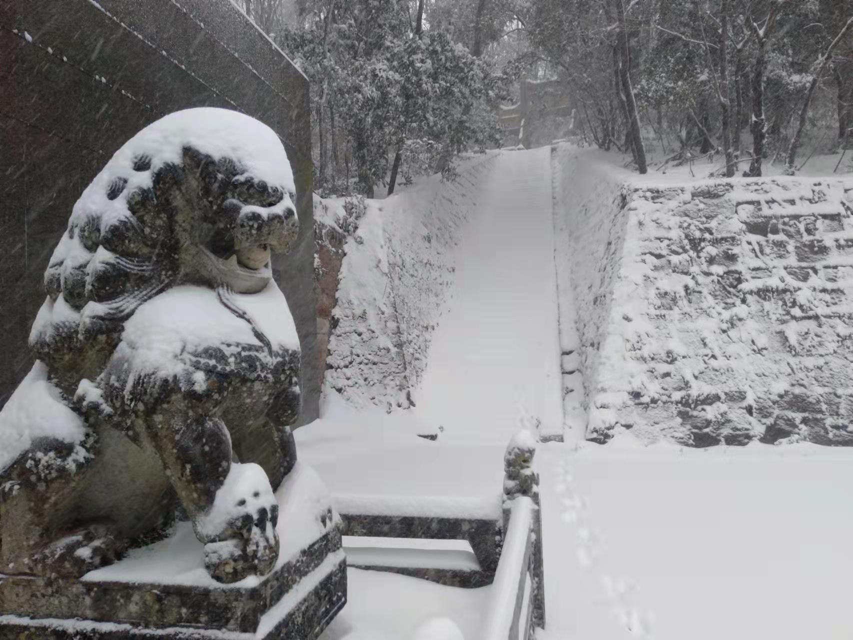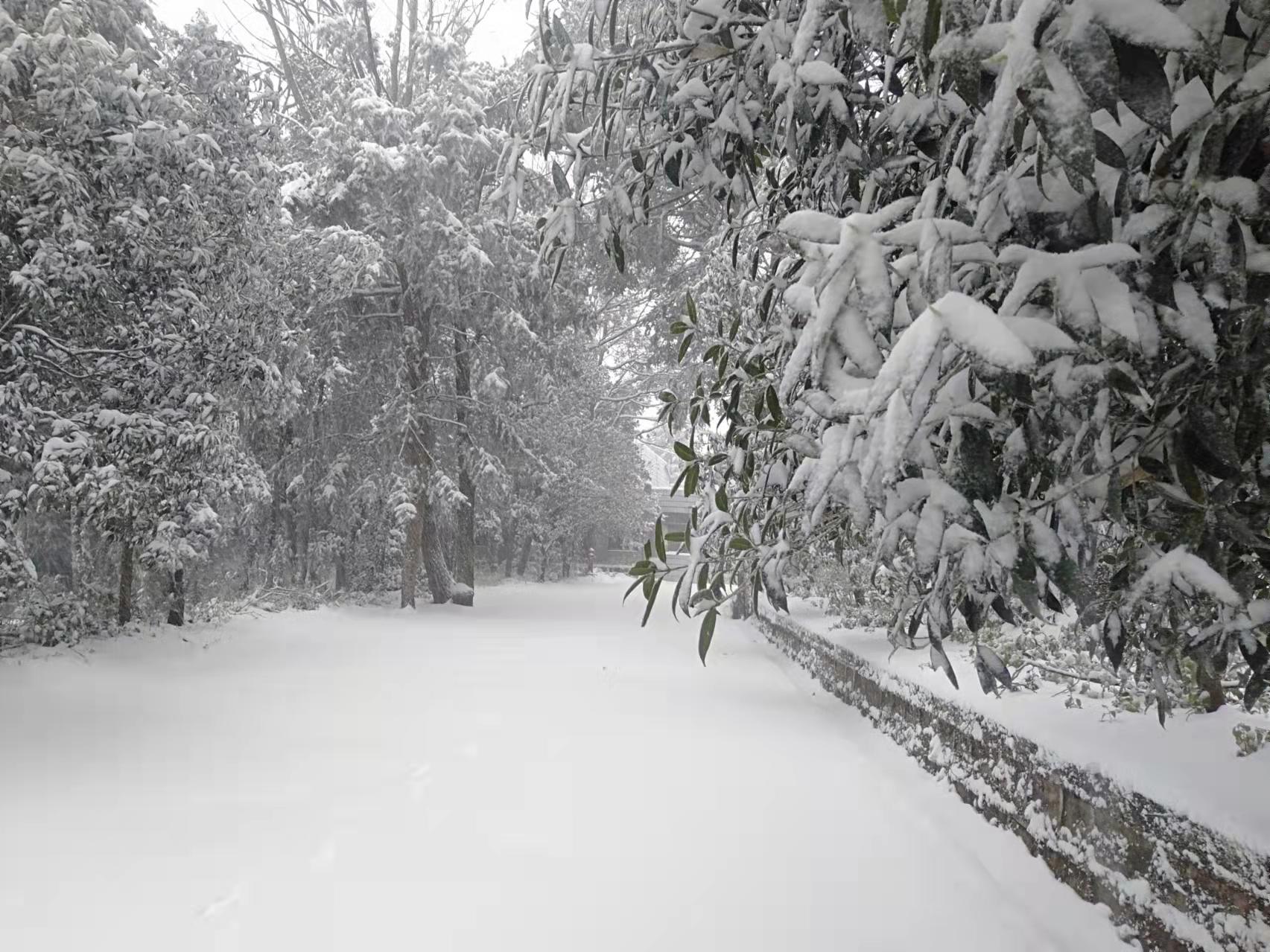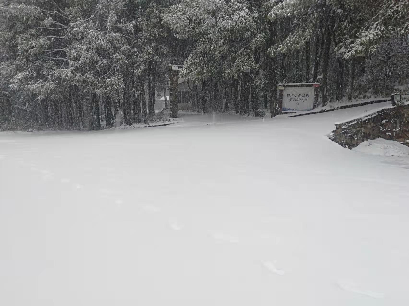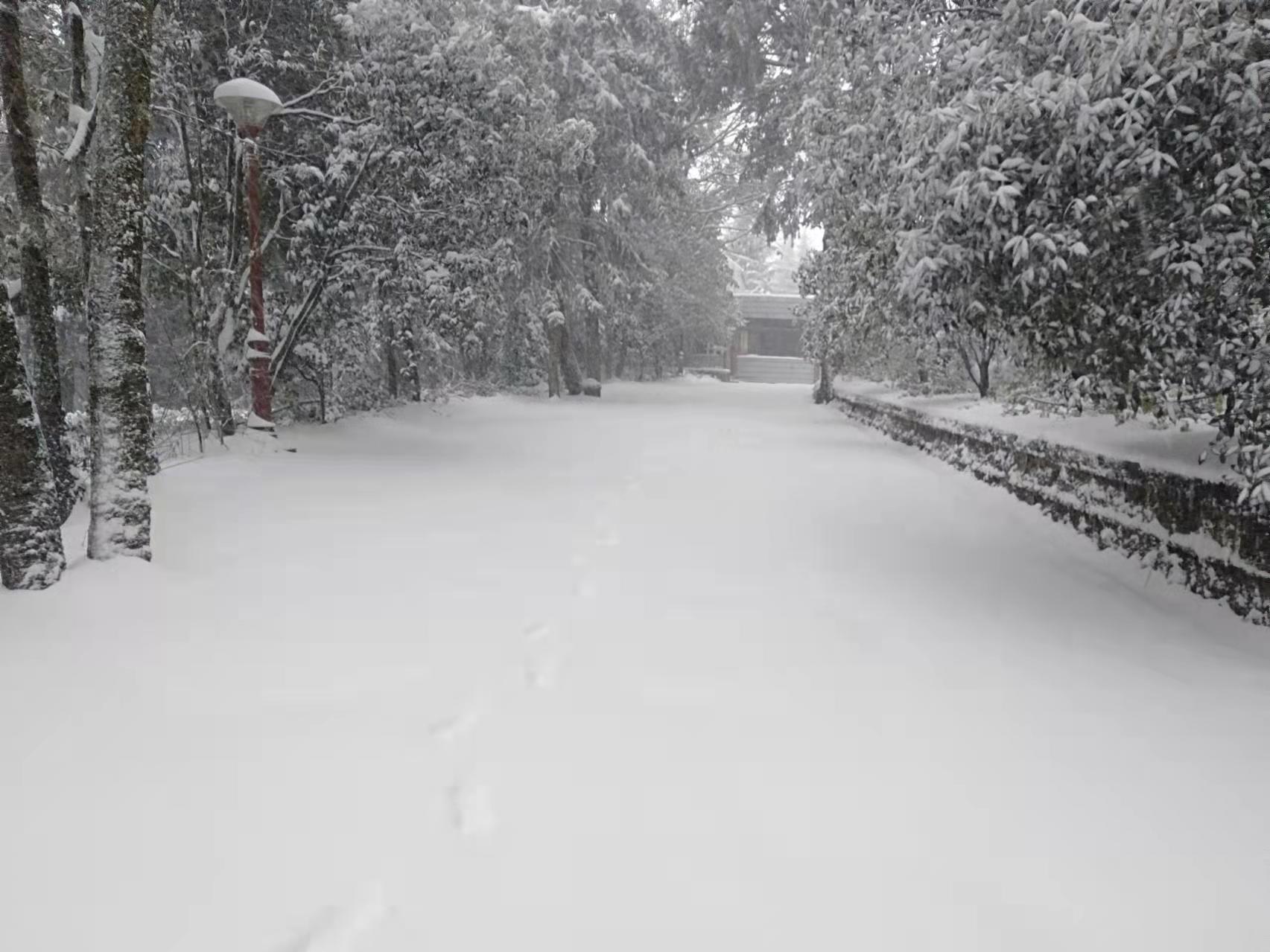 據悉,此次下雪獅子山景區內積雪厚度達到40公分左右
