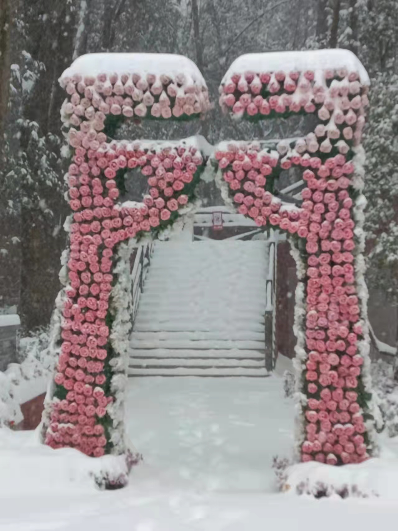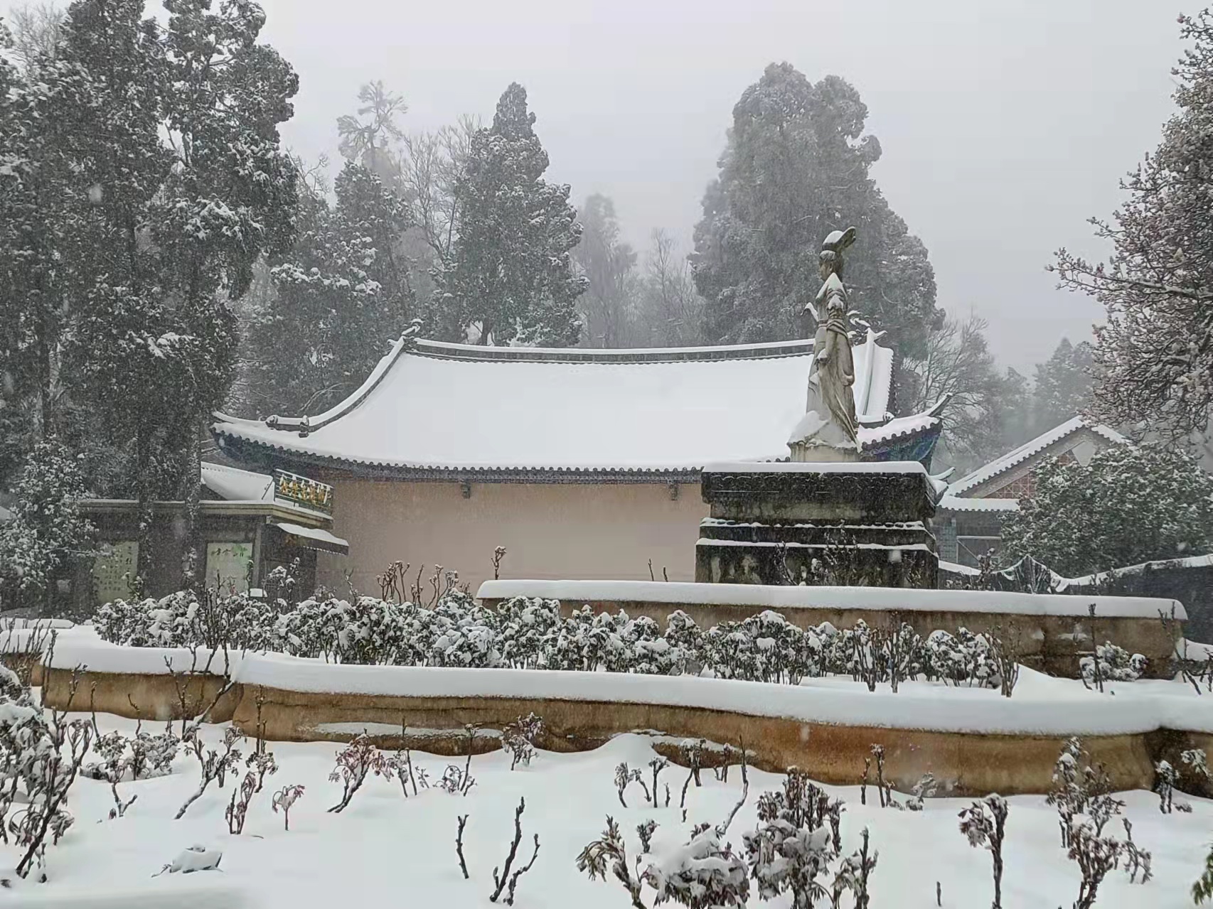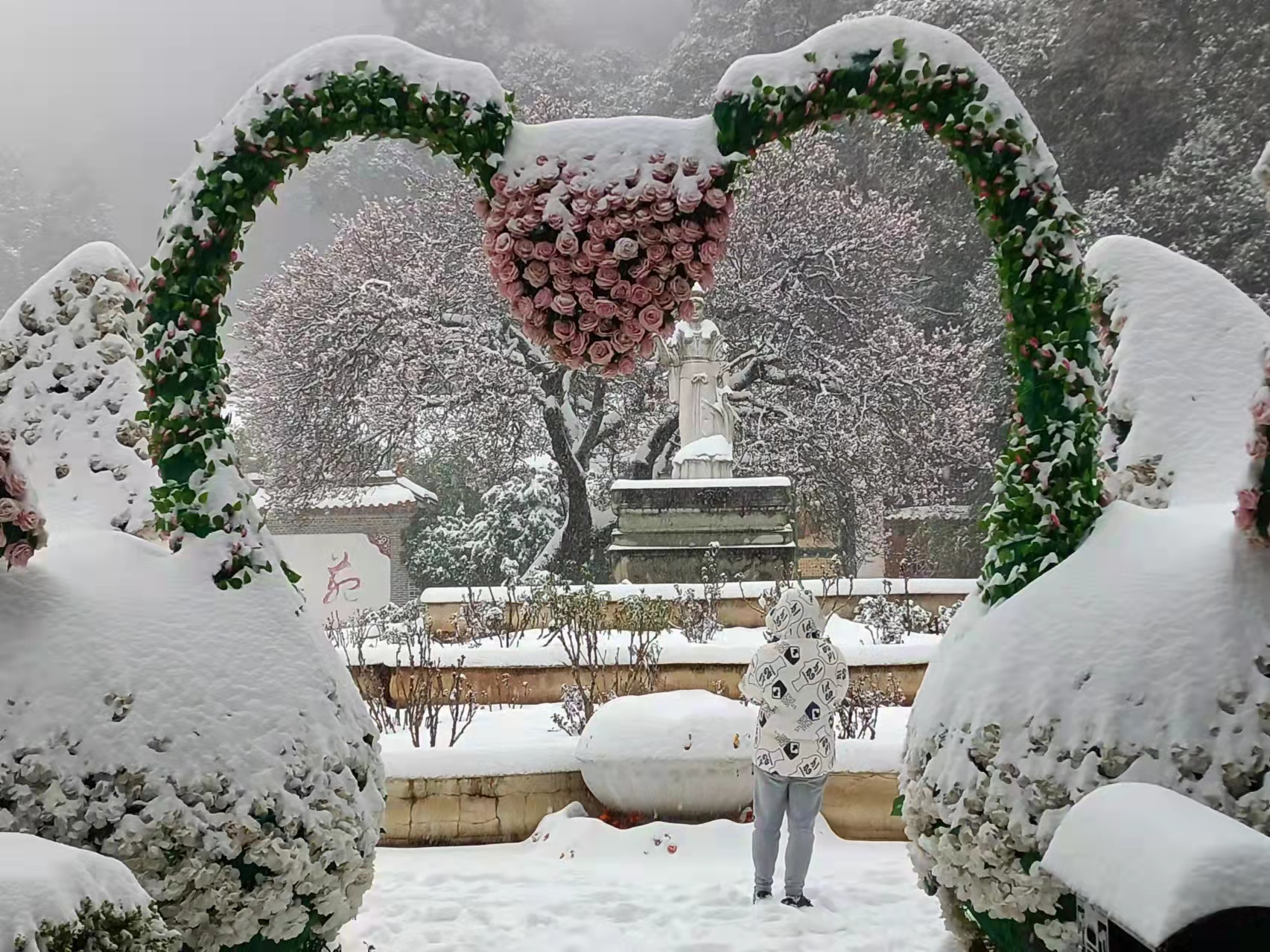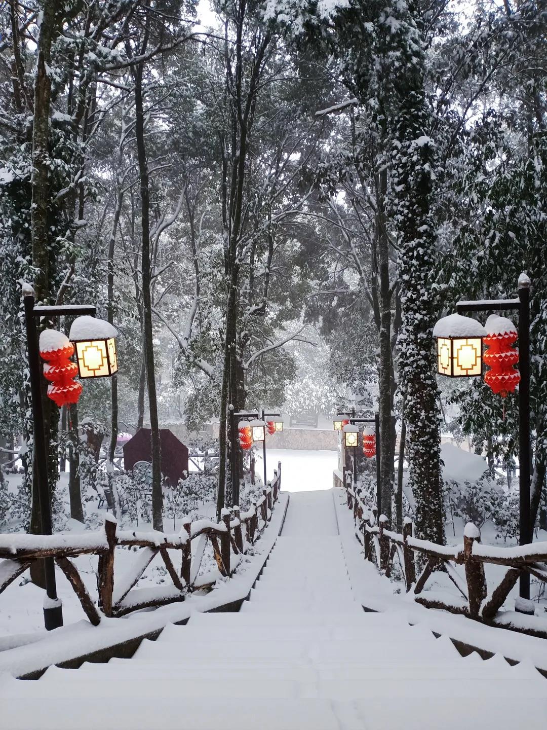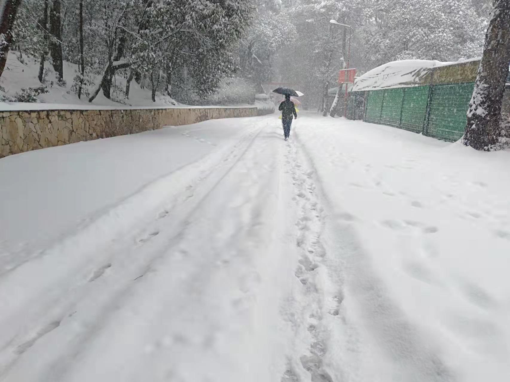 據悉,此次下雪獅子山景區內積雪厚度達到40公分左右