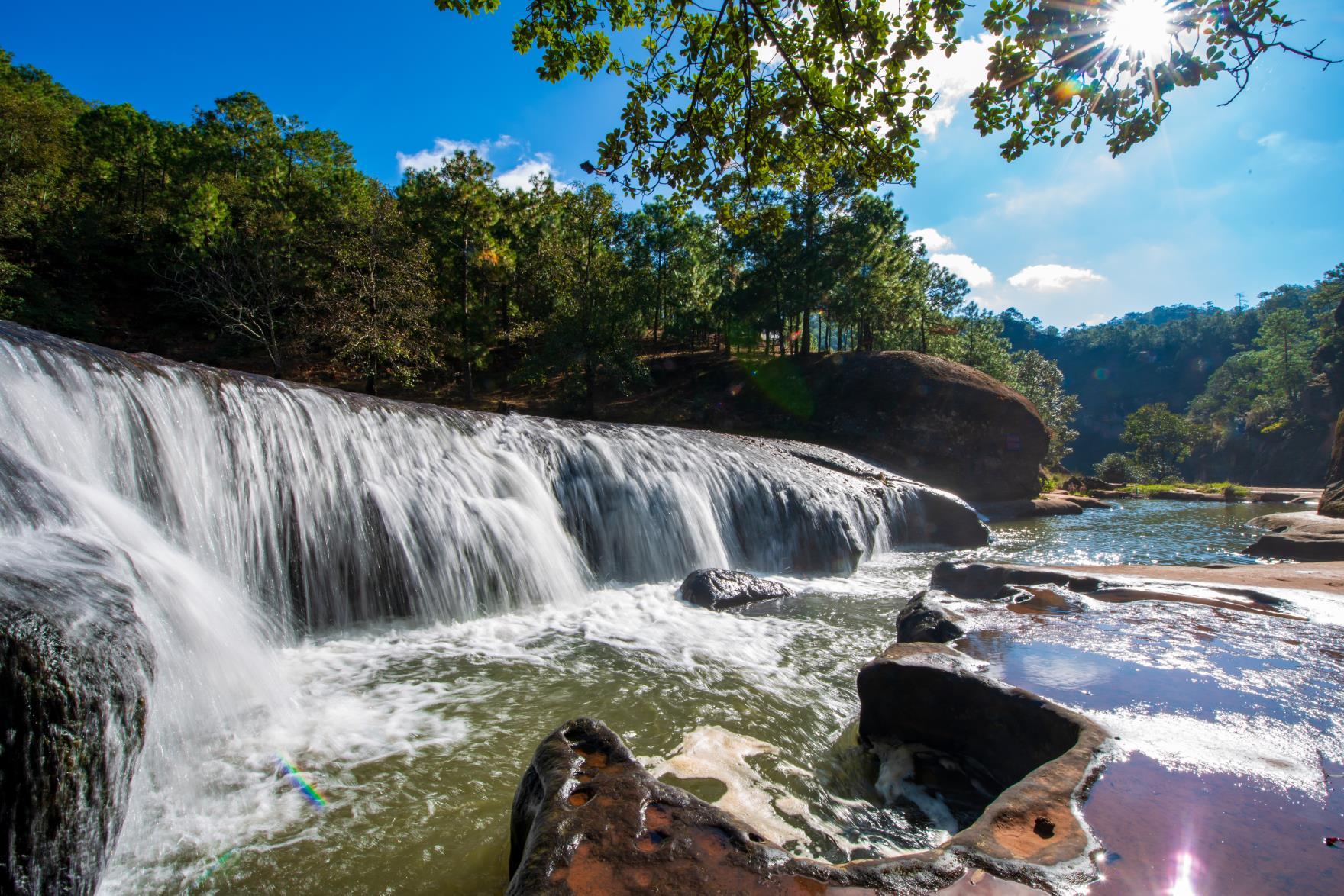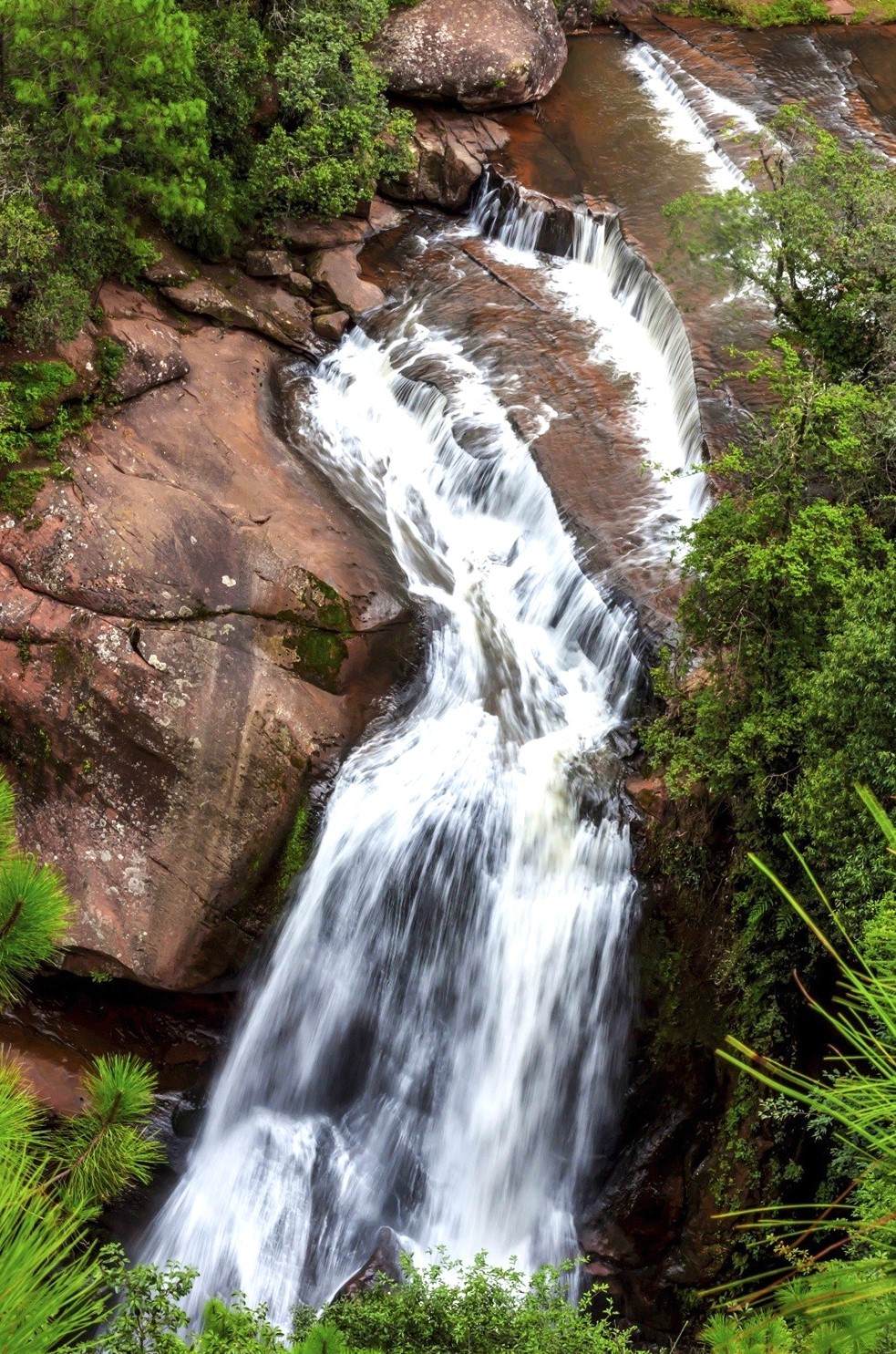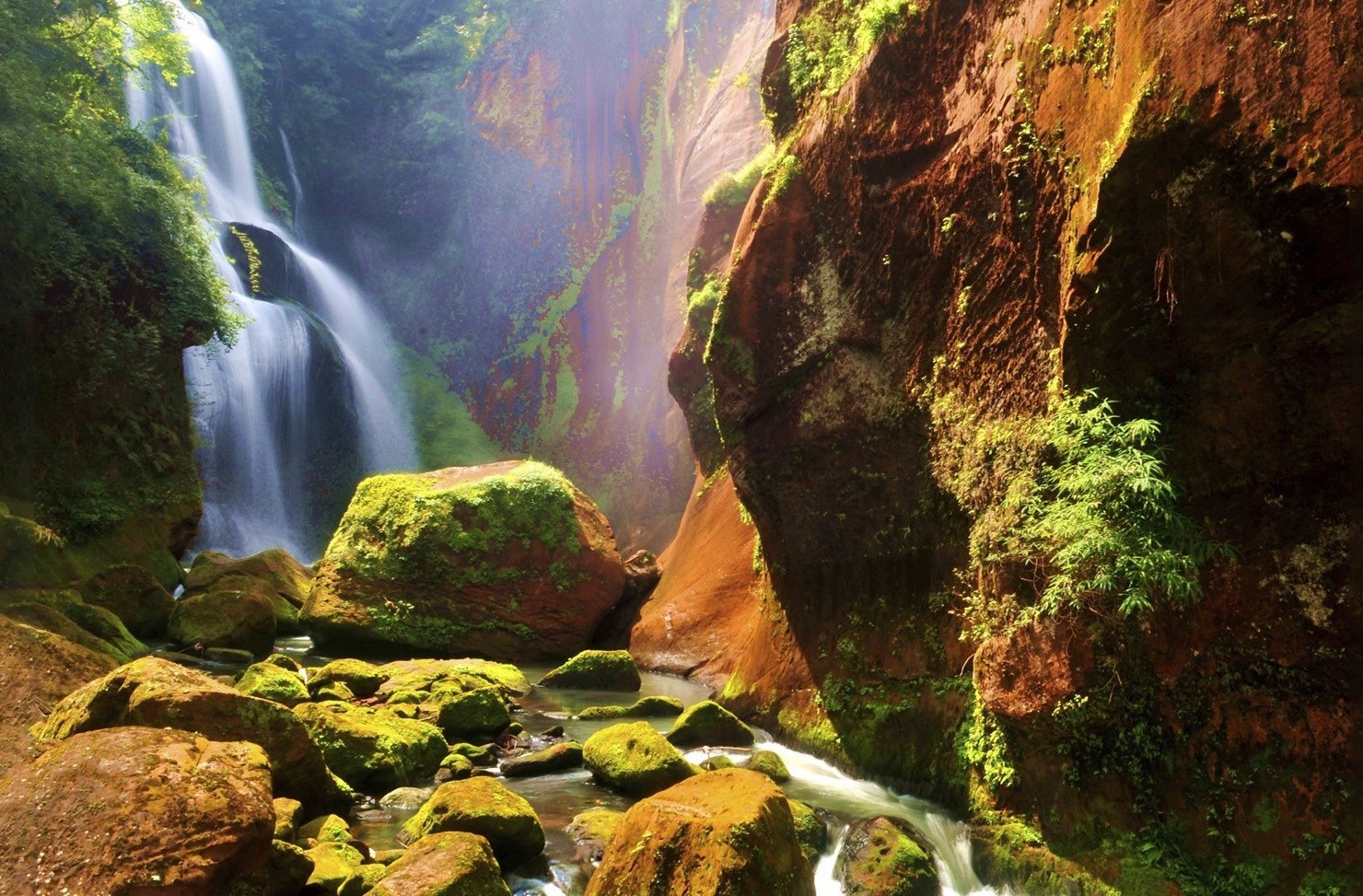 水城河位于武定縣插甸鎮水城村,流域范圍內植被茂密,生態環境良好,當地人稱水城河是“頭戴綠草帽、中間石肚翹、腳下清泉流”的絕美山水風光旅游地。大自然的天工之作,造就了水城河數道不同類型的瀑布,河床兩岸巨大奇特的紅砂巖與原生植被交融一體,形成亮麗景觀。清澈的河水在寬闊而堅硬的河床上靜靜地流淌,既有高原湖泊的明凈,也有深谷飛瀑的壯美。沿著水城河一路前行,便能邂逅絕美的山水畫卷,有溪流瀑布歡唱,高原平湖靜思,云霧高山纏繞,巨石險壑聳立,深谷村落悠然。圖為水城河瀑布。盛高義 攝