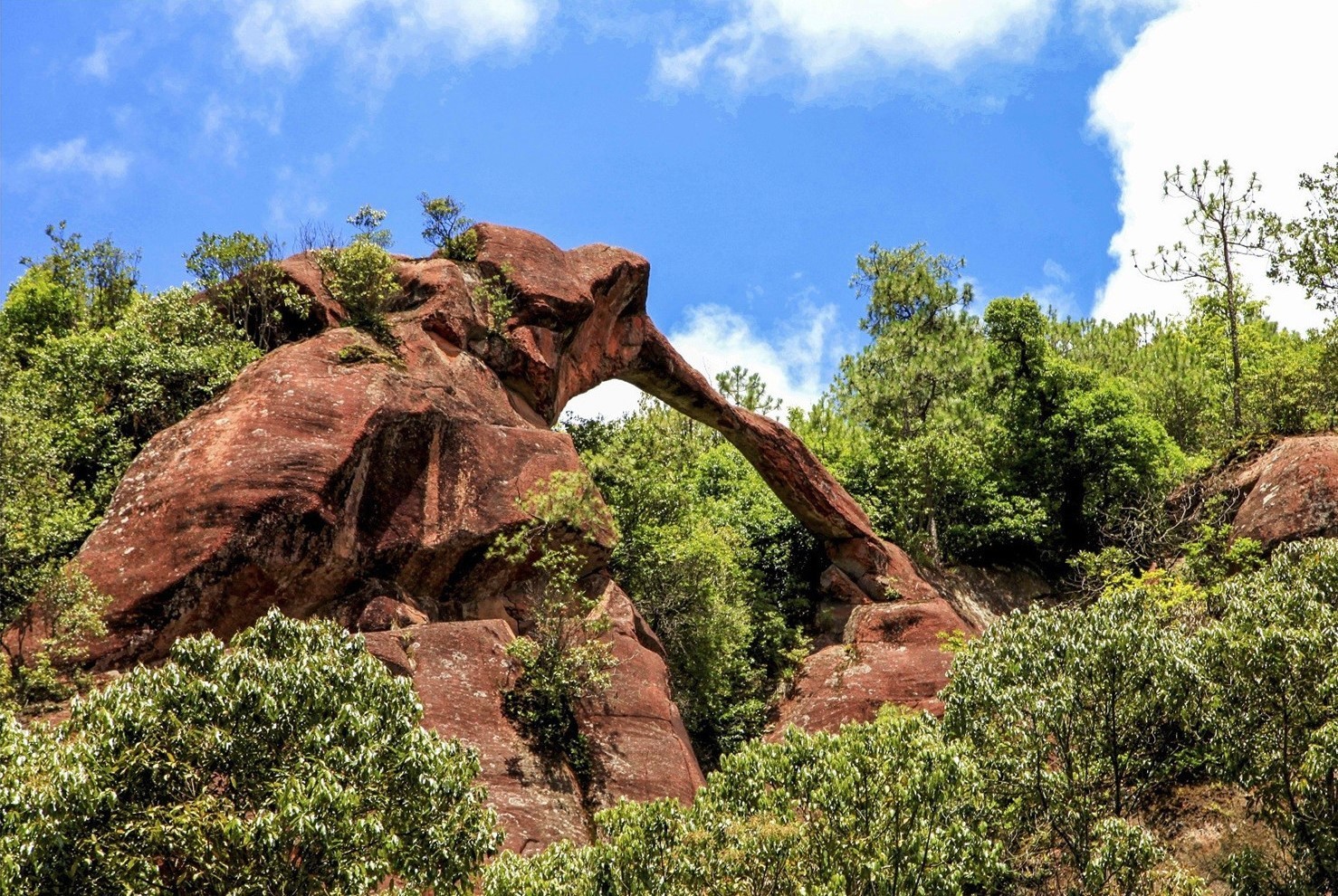 巨大巖石剖面盡顯丹霞風采,似大象戲水。胡德云 攝