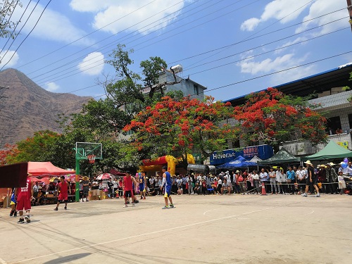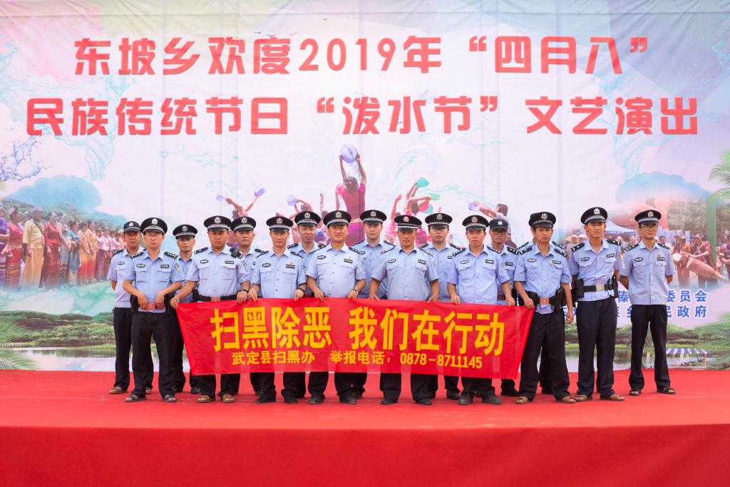 據悉,潑水節期間,主辦方還為大家準備了“熱土東坡·魅力傣鄉”攝影展、刺繡展、籃球友誼賽、臺球賽、撲克賽、象棋賽、特色產品展銷、民間文藝展演等,豐富節日內涵,讓大家飽嘗傣族文化大餐,品味東坡鄉地方特產。文藝晚會現場氣氛熱烈、高潮迭起,掌聲不斷,來自各村各寨的演員們用婀娜的傣家舞姿訴說著一個個動人的故事,《傣鄉水》《傈僳小妹愛跳腳》《碧波孔雀》等節目慶祝著各族人民的和諧相處;來自武定縣演藝公司帶來的《羅婺大地正氣揚》《如此開會》等節目精彩呈現,通過群眾喜聞樂見的文藝形式,讓掃黑除惡宣傳工作更接地氣,更入民心。籃球賽場上,各代表隊激烈角逐,展現青春與活力碰撞的競技火花,引來現場觀眾陣陣喝彩,給廣大群眾搭建了“全民健身運動”的“大平臺”。