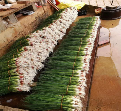 小蔥產業不僅鋪就了火山村種植戶的致富道路,還為當地村民提供了家門口就業的機會。每逢小蔥收獲季節,總能看到村里的老人三五成群,在分揀、清洗小蔥。“我們年紀大了,其他的事情做不來,但我們會分揀和清洗小蔥,一天也可以有二三十塊錢的收入。”68歲的張大媽說,小蔥采摘后,需要把黃葉分揀出來、洗去泥土,最后整理之后才拿出去賣。