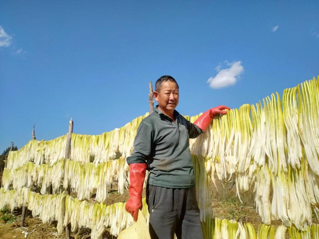 春節將至,哪吐村10個村民小組的田間地頭,隨處可見一排排新鮮潔白的蘿卜條。