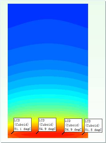 由于現(xiàn)在的智能手機很多采用背光倒置光源(即LED光源在聽筒位置),導(dǎo)致與主板上的熱源疊加,從而溫度過高,嚴重影響客戶體驗,本方案可以有效降低LED光源溫度,但是需要與屏廠協(xié)調(diào)同時評估。本方案依托于Flotherm進行散熱模擬分析。