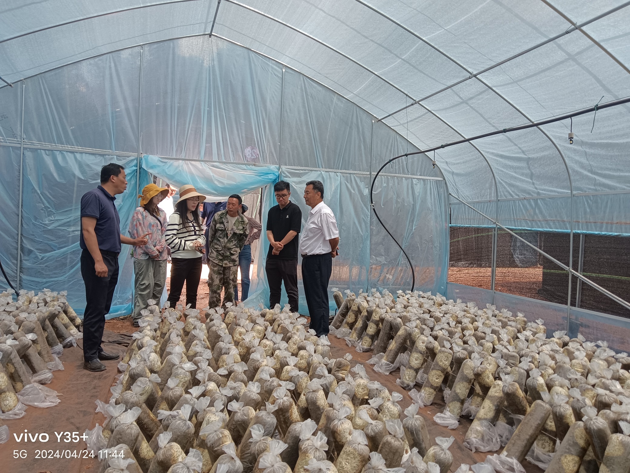 調研指導組一行深入到武定縣插甸鎮老木壩村委會,對省科技廳2023年首批批準立項,由武定縣科技成果轉化中心承擔,陸良爨鄉綠圓菇業有限公司、普洱市玉林林業開發有限公司、玉溪玉浦生物科技開發有限公司、武定縣老木壩種養殖專業合作社、云南省農業科學院生物技術與種質資源研究所、云南省林業和草原技術推廣總站等企業、科研院所、技術推廣服務單位參與實施的建設武定縣老木壩鄉村振興科技創新村項目進行調研指導。