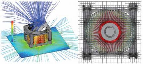 從網格劃分的時間成本來看,采用貼體 CFD 網格來捕捉這一細節級別并提供所需的全耦合熱傳遞仿真支持,顯然是不現實的。因此,原先用于電子散熱應用的笛卡爾方法(因為之前建模的幾何模型往往“四四方方”)現已被擴展用于準確捕捉非笛卡爾幾何模型。傳統 CFD 方法是對幾何模型劃分網格,然后生成網格單元,每個單元都作為一個控制體傳輸給 CFD 求解器,而我們則采用與此不同的方法,就是使用每個網格單元中幾何模型的知識直接構建各種控制體,不必作進一步的網格劃分。