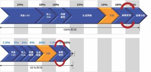 Denso 公司的例子(圖 11)說明了企業如何通過提高其 CAE 活動的保真度來有效應對壓縮設計裕量的壓力。如果使用可與實際設計流程同步的熱設計解決方案,就可以大幅減少設計時間。