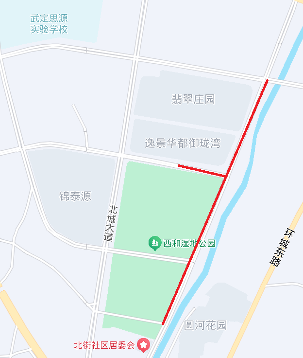 濱河路忠愛大橋至牡丹大橋段、武續(xù)路濕地公園段。