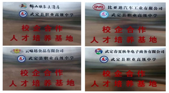 學校與昆明碧海汽車技術服務公司、武定永銀公司、武定縣農機化駕駛培訓站等單位聯合,建立了武定縣職業高級中學汽車維修實訓基地、武定縣職業高級中學電子商務實訓基地、武定縣職業高級中學汽車駕駛培訓基地。為實施以項目為導向的教學和學生頂崗實習提供了比較充分的保障。