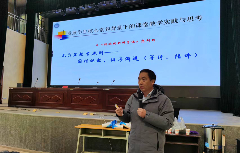 2月7日上午,湖北省洪湖市教育科學研究中心朱道榮副主任開展《發展學生核心素養背景下的課堂教學實踐與思考》講座,開啟了本次第一場專題培訓。朱老師圍繞發展學生核心素養背景下的課堂教學實踐與思考,通過學習金字塔的模式引出課堂教學模式,指導老師們既要研究“學”,更要研究“教”,通過實際案例印證學與教的教育哲理。