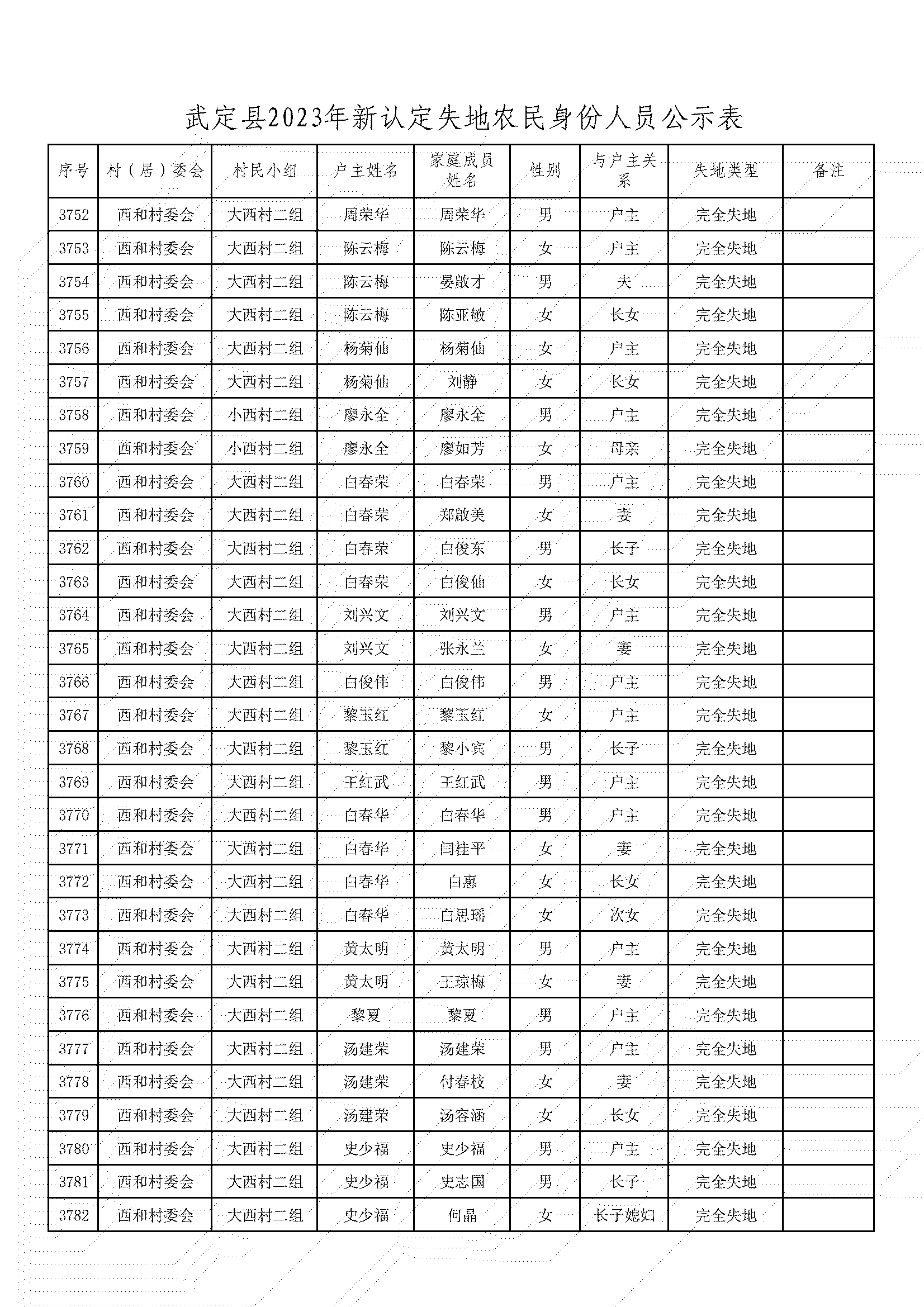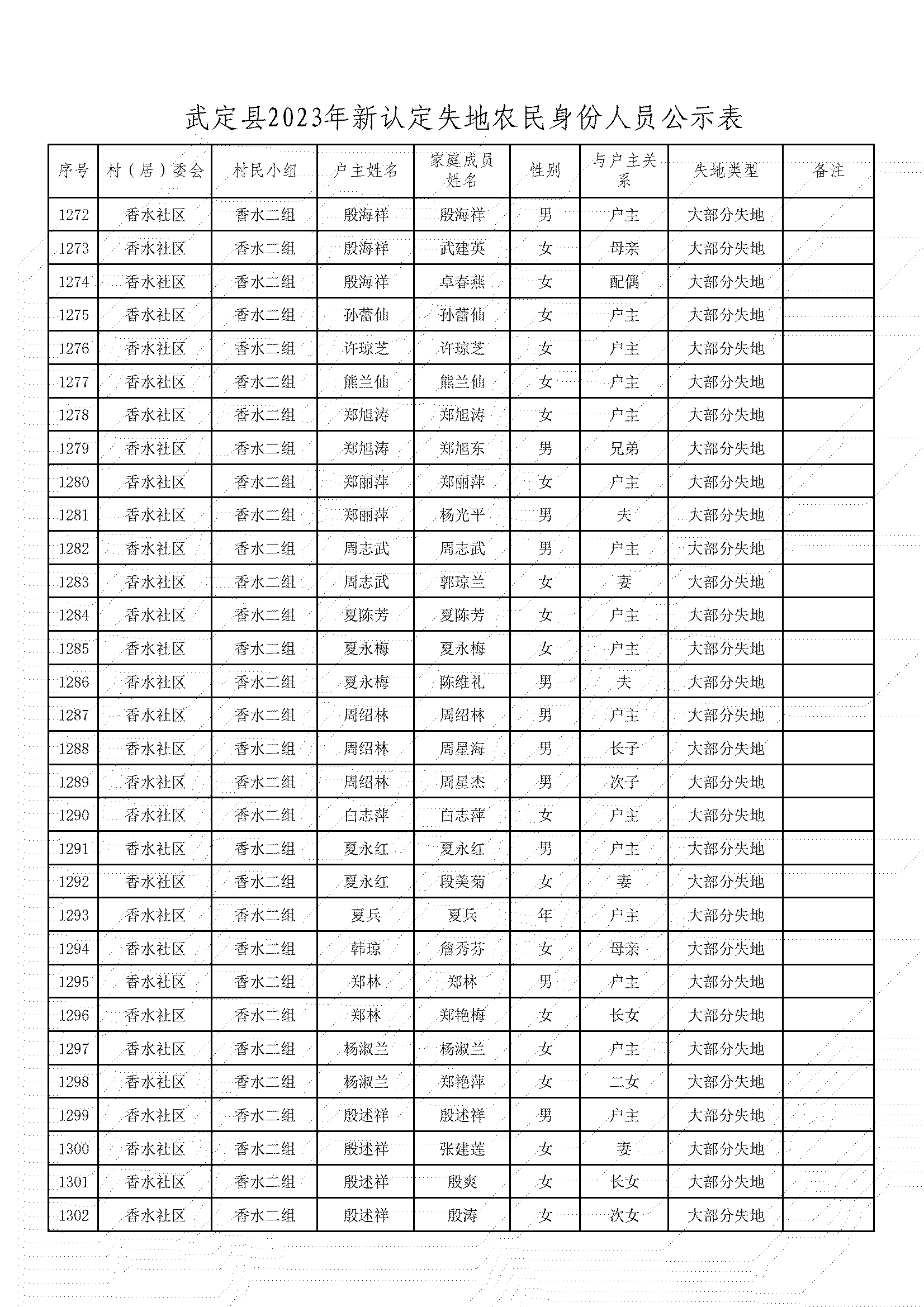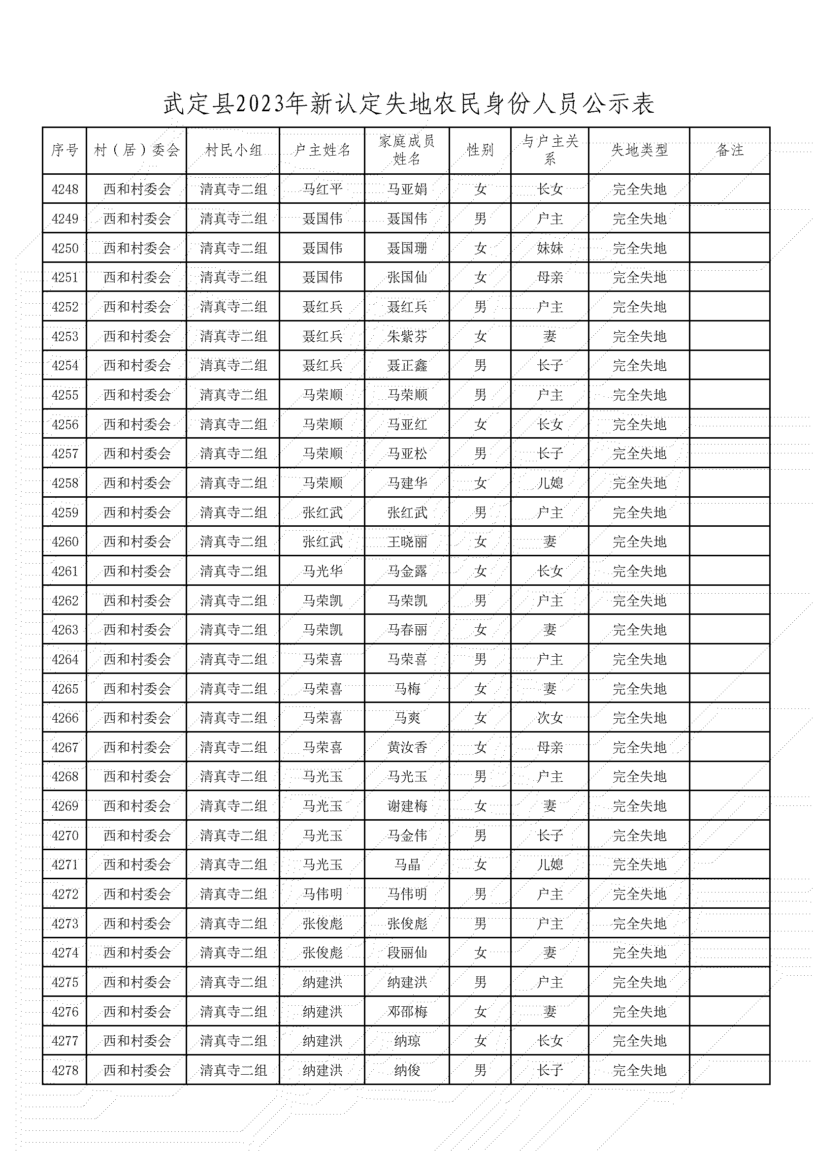 根據《武定縣人民政府辦公室印發武定縣改革完善被征地農民基本養老保障工作實施辦法的通知》(武政辦發〔2020〕6號)文件精神,經村(居)委會、獅山鎮、縣公安局、縣自然資源局、縣農業農村局、縣人社局對被征地農民土地征收、戶籍人口、參加基本養老保險等情況進行審核,現將2023年符合認定為被征地農民身份的人員予以公示,接受社會監督。公示期從2023年12月18日至2023年12月22日,共5天。公示期間,如對公示對象有異議,請向武定縣人力資源和社會保障局社會保險中心反映。