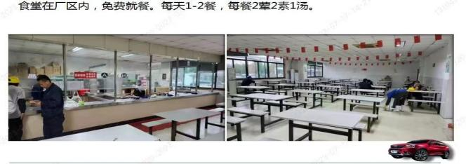 包吃住,免費工作餐,宿舍住宿六人間,水電平攤。熱水器/空調/洗衣機配備齊全,娛樂設施配備:籃球/羽毛球等娛樂設施。