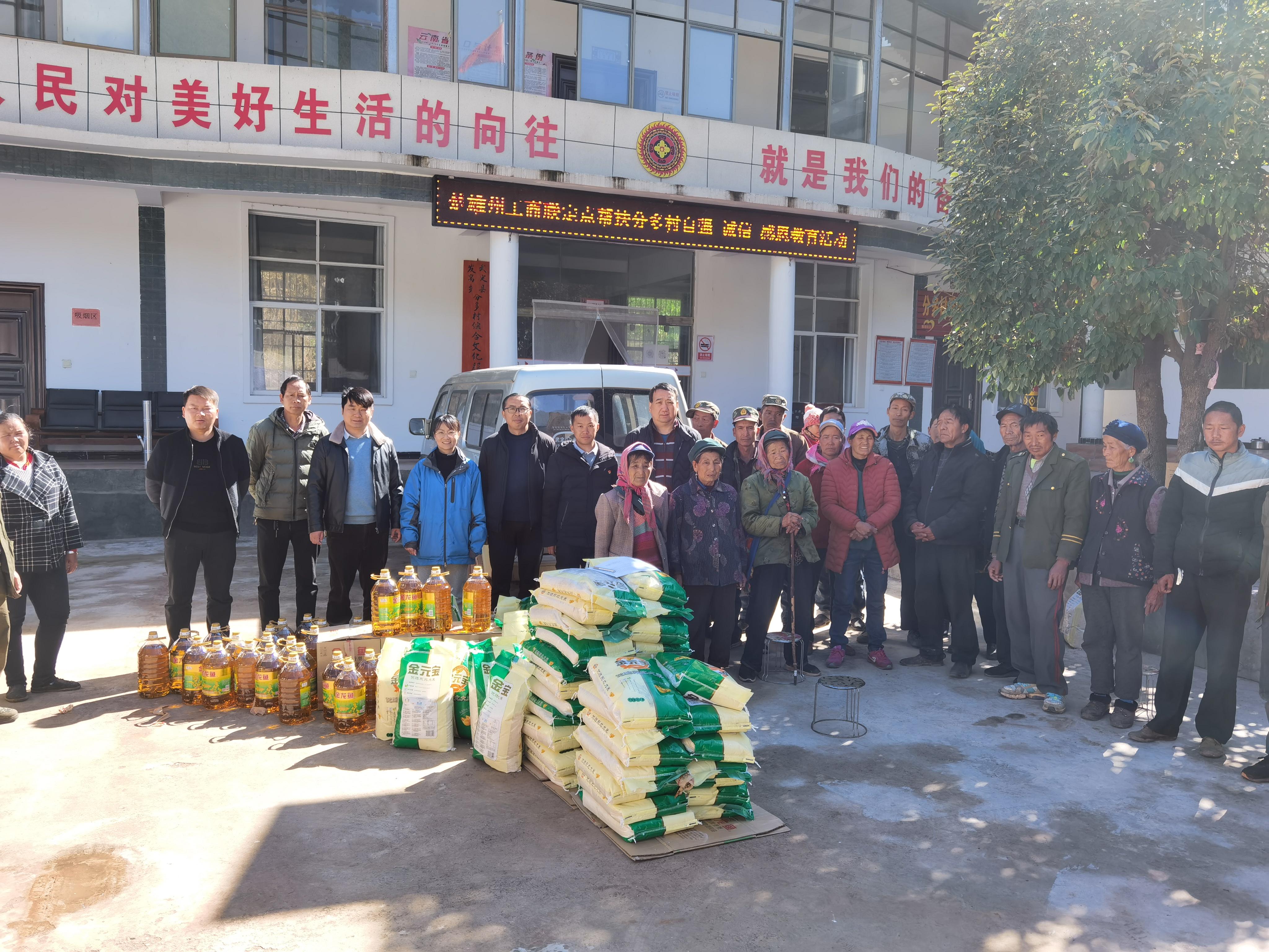 近日,武定縣發窩鄉普降瑞雪。1月18日天空放晴,州工商聯副主席馬志洪、經濟聯絡科科長王吉永一行帶著全體干部職工關心祝福的心意來到定點幫扶的武定縣發窩鄉分多村委會,在新春佳節來臨之際對68戶幫扶戶進行了看望慰問。