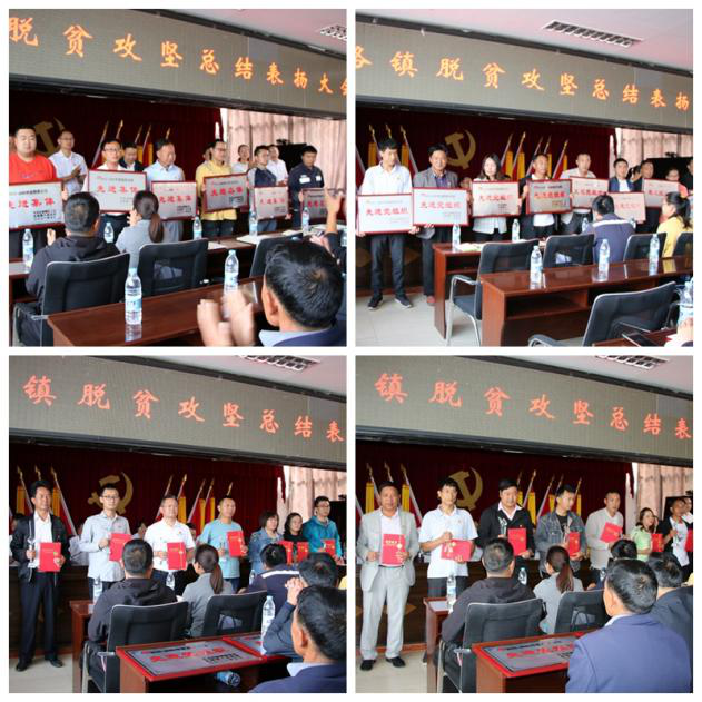 虎圣檳鎮長宣讀表揚決定,大會共表彰了農業農村服務中心等6家脫貧攻堅工作先進集體,白路村黨總支等20個脫貧攻堅工作先進黨組織及胡秀蓮等72名脫貧攻堅工作先進個人,主席臺領導為他們頒發證書和獎杯獎牌。
