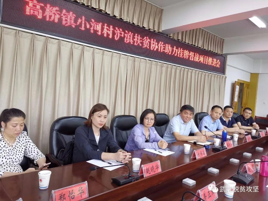 7月14日下午,潘展平一行首先參加了高橋鎮(zhèn)小河村滬滇扶貧協(xié)作助力掛牌督戰(zhàn)項(xiàng)目推進(jìn)會(huì)議。楚雄州政府副秘書長趙良,州扶貧辦副主任、武定縣人民政府副縣長林昆,武定縣委常委、縣人民政府副縣長周偉,縣人民政府副縣長普正祥,縣扶貧辦、縣農(nóng)業(yè)農(nóng)村局、縣自然資源局、縣工信商務(wù)科技局、縣政務(wù)服務(wù)管理局及高橋鎮(zhèn)相關(guān)負(fù)責(zé)人參加會(huì)議。會(huì)議由武定縣委常委、縣人民政府副縣長周偉主持。