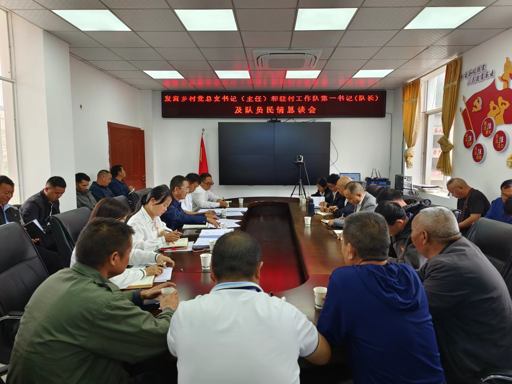 鄉黨政班子成員李華、潘在華、董如惠、沙成金、張睿、各村黨總支書記、村委會主任、各村駐村工作隊第一書記(隊長)及隊員共計50余人參會。