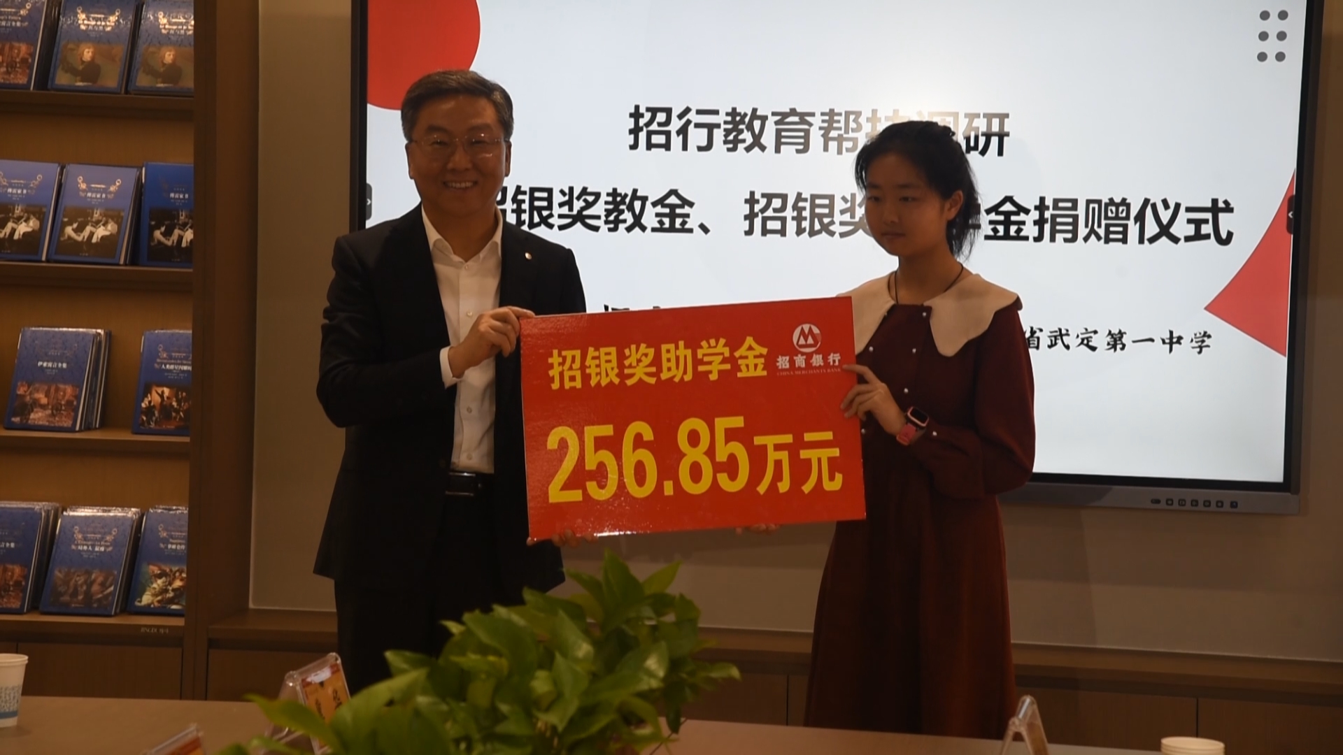 隨后,舉行2023年招銀獎教金、招銀獎助學金、招銀托管幫扶資金捐贈儀式。王良頒授“招銀獎教金”捐贈牌,副縣長周學強代表武定縣人民政府接牌;招商銀行總行副行長王云桂頒授“招銀獎助學金”捐贈牌,武定一中高一學生代表段雄珊接牌;招商銀行總行工會辦公室主任蔡進頒授“省屬高校縣中托管幫扶項目資金”捐贈牌,校長顧宇飛代表武定一中接牌。