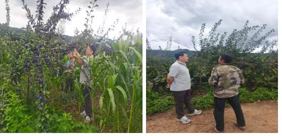 座談結束,和向東董事長前往牛多村西梅基地進行實地調研。看著返鄉“新農人”王忠山辛勤耕耘后掛滿枝頭的西梅,他由衷地感到欣慰。在西梅林間,和董事長與負責人深入交流,細致詢問收成、困難及未來規劃。針對西梅口感問題,他誠懇建議:“品質為先,擴大種植同時,務必提升口感,讓西梅成為致富的金果果。”