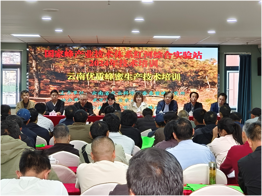 為推進國家鄉村振興重點幫扶縣干部人才“組團式”幫扶工作,充分發揮國家蜂產業技術體系對區域產業發展的科技支撐,推動云南蜂蜜生產高質量發展,保障蜂農增產增收,助力鄉村振興。10月12日至14日,國家蜂產業技術體系紅河綜合試驗站在云南省武定縣舉辦2024年云南優質蜂蜜生產技術培訓。特邀請國家蜂產業技術體系崗位科學家浙江大學胡福良、鄭火青教授,安徽農業大學余林生教授、云南農業大學董坤教授和云南省農業農村廳畜牧工作總站尤方東高級畜牧師等專家蒞臨指導并授課。