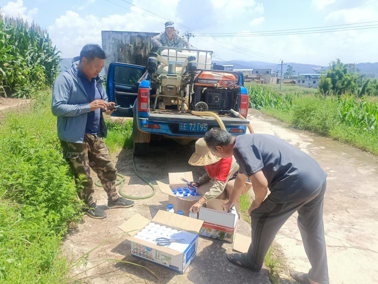8月20日,武定縣農(nóng)業(yè)技術推廣中心還將4000畝玉米病蟲害統(tǒng)防統(tǒng)治農(nóng)藥發(fā)放到田心、東坡、己衣、萬德四個鄉(xiāng)鎮(zhèn),采取統(tǒng)一發(fā)放農(nóng)藥、集中防治,有效減少玉米果穗蟲害損失率,從而達到增產(chǎn)增收的目的。