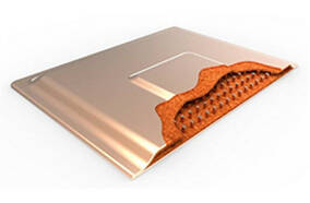 均溫板由內壁具有微結構的密封真空容器和少量與其自身氣體平衡的工作流體組成。真空容器通常由銅制成,并圍繞周邊密封。內壁的微結構可以由許多不同的物質制成。最常見的方法是將銅粉燒結到容器的內壁。許多流體可用作VCH的工作流體。但是,在大多數CPU,GPU和LED冷卻應用中,通常會選擇水作為工作流體,因為水的潛熱高,表面張力高,熱導率高,且基于成本和環境方面的考慮等。