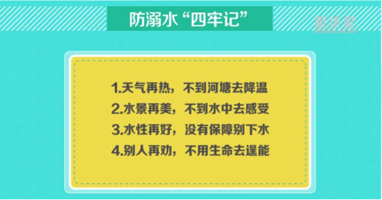 每年因溺水意外死亡的人數僅次于交通事故,溺水事故已經成為了青少年意外傷害的“頭號殺手”。數據顯示,未成年人發生溺水事故時,99%的家長都不在身邊。所以,家長一定要對孩子進行防溺水安全教育,讓孩子認識危險,遠離危險,學會保護自己。