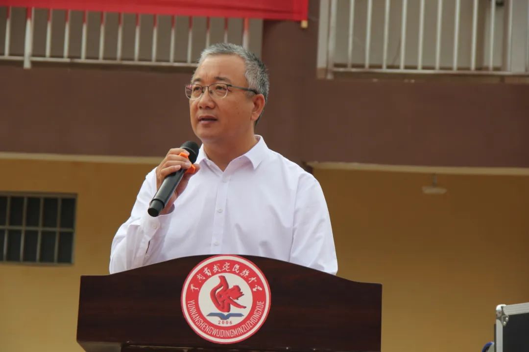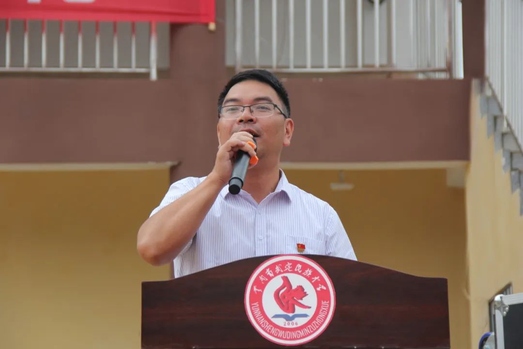 王永春校長發言激情四溢的致辭。他全面回顧和總結了學校過去一年取得的成績,指出學校各項事業蒸蒸日上,校風、學風、教風進一步優化,高考、中考成績再創輝煌,“組團式”幫扶工作成效明顯,民族教育亮點紛呈,素質教育再譜華章。同時,他還呼吁全體民中人在新的學年要樹立信心,振奮精神、鉚足干勁,快馬加鞭再發力,擼起袖子加油干!