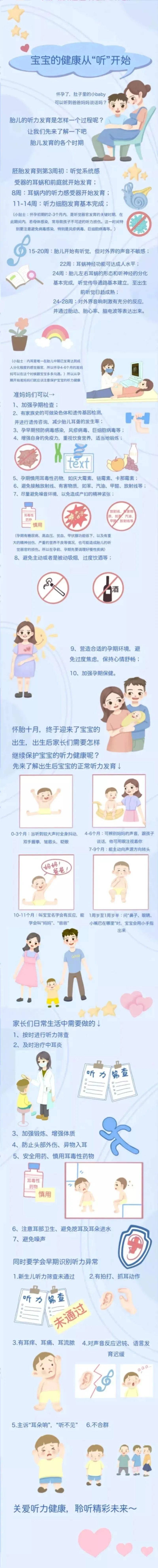 一圖讀懂胎兒的聽功能發(fā)育、孕期的聽力預防保健、出生后寶寶的聽力發(fā)育以及聽力異常的早期識別,指導孕育健康寶寶。