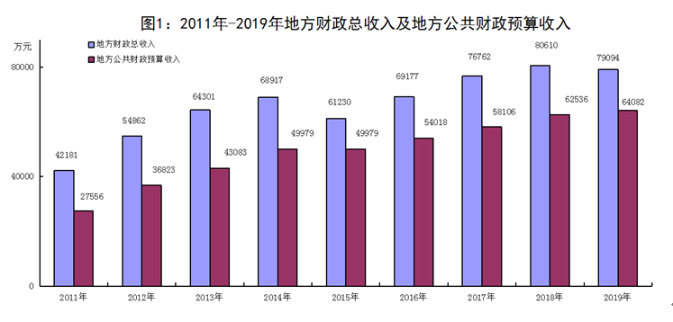 全年完成財(cái)政總收入79094萬元,同比減少1.88%。一般公共預(yù)算收入64082萬元,增長2.47%;其中:稅收收入33830萬元,減少11.52%;非稅收入30252萬元,增長24.48%。一般公共預(yù)算支出333031萬元,增長11.76%。