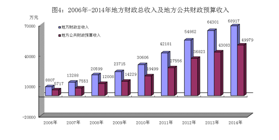 全年完成財政總收入68917萬元,同比增長7.18%。其中:公共財政預算收入49979萬元,增長16.01%;上劃中央及省級收入18938萬元,減10.75%;公共財政預算支出184961萬元,增長18.35%。
