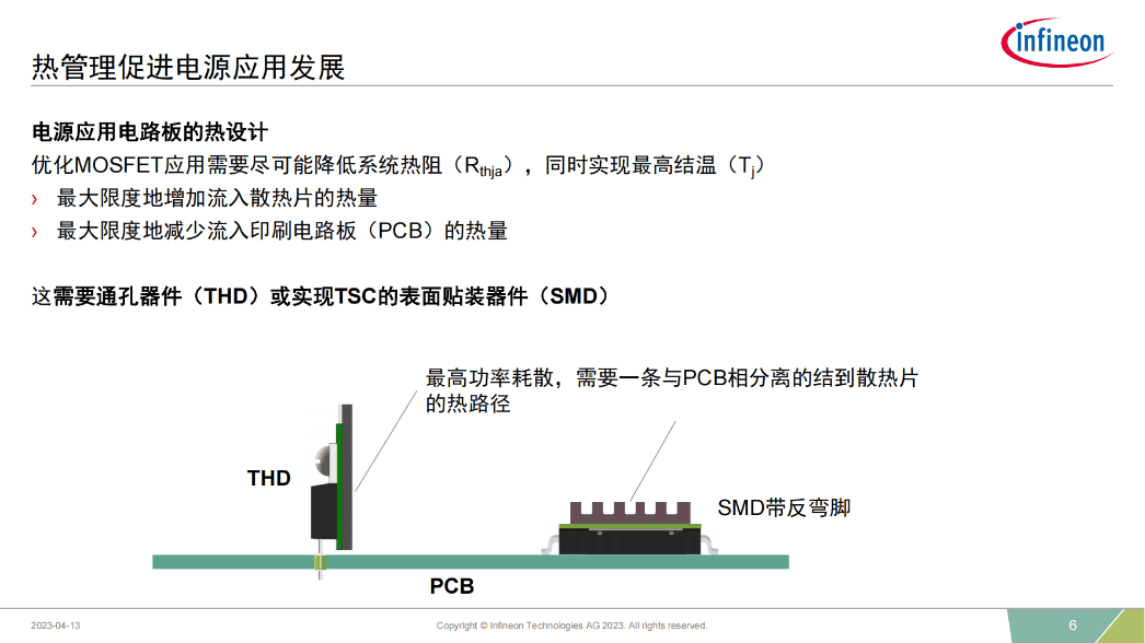 優化MOSFET應用需要盡可能降低系統熱阻(Rthja),同時實現最高結溫(Tj)。如此一來能夠最大限度地增加流入散熱片的熱量,并最大限度地減少流入PCB的熱量。