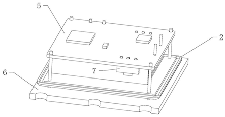 此外,這種晶體振蕩器還包括位于空腔中的內電路板5以及位于基座、遠離導熱套的一側的外電路板6,外電路板與內電路板通過引腳實現電氣連接,導熱套通過銀膠等導熱材料粘貼于內電路板靠近基座的一側。通過將導熱套設置于內電路板與基座之間,可以有效降低晶體振蕩器的整體高度,減小晶體振蕩器的體積。